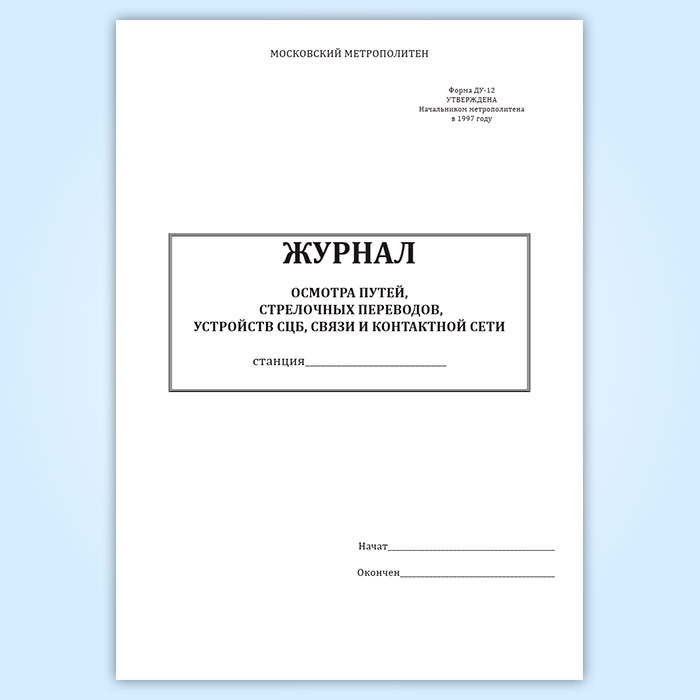 Журнал осмотра путей, стрелочных переводов, устройств СЦБ, связи и контактной сети (форма ДУ-12) в Ижевске купить