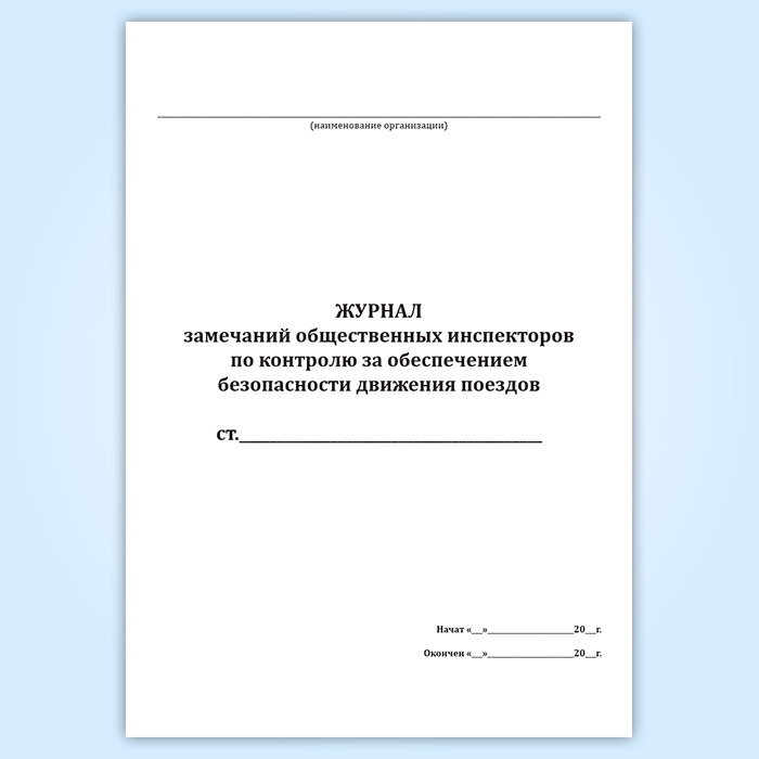 Журнал замечаний общественных инспекторов по контролю за обеспечением безопасности движения поездов в Ижевске купить