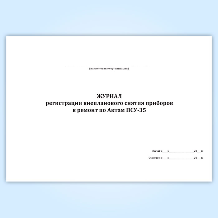 Журнал регистрации внепланового снятия приборов в ремонт по Актам ПСУ-35 в Ижевске купить