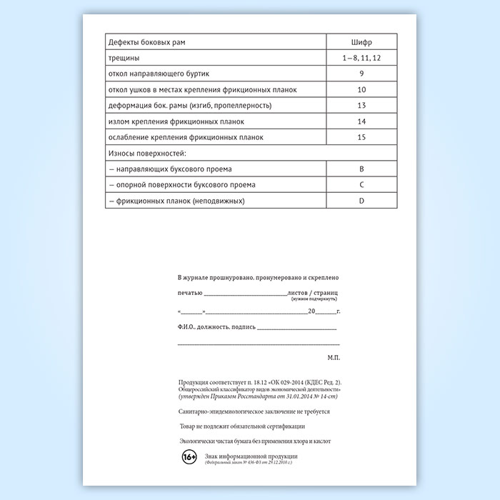 Журнал учета результатов осмотра и дефектоскопирования боковых рам тележек грузовых вагонов в Ижевске купить