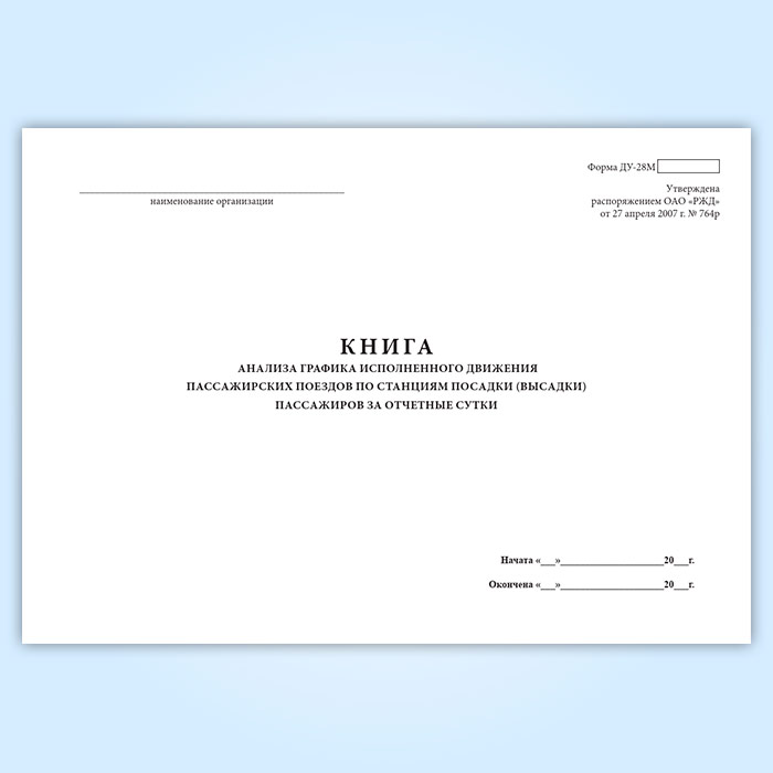 Книга анализа графика исполненного движения пассажирских поездов по станциям посадки (высадки) пассажиров за отчетные сутки (форма ДУ-28М) в Ижевске купить