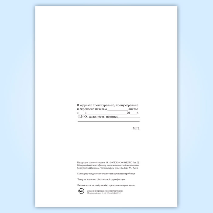 Вы получаете печатную продукцию прошнурованной и c местом для вашей печати в соответствии с действующими нормативными документами: