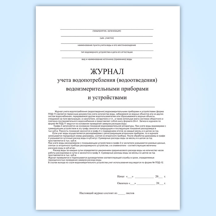 Журнал учета водопотребления (водоотведения) водоизмерительными приборами и устройствами (форма ПОД-11) в Ижевске купить