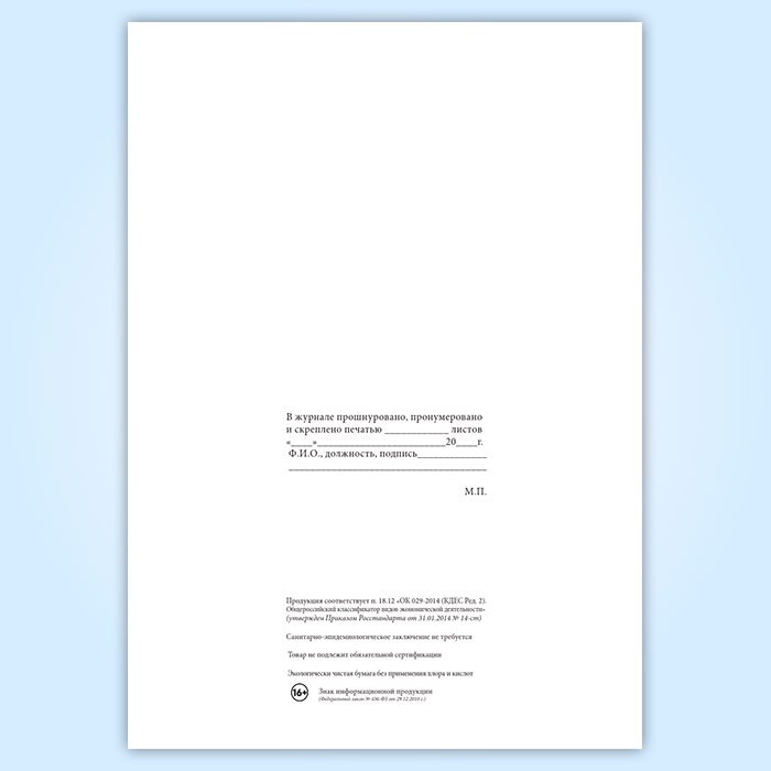 Вы получаете печатную продукцию прошнурованной и c местом для вашей печати в соответствии с действующими нормативными документами: