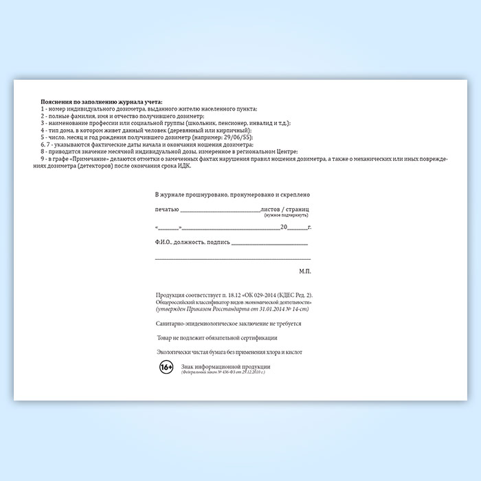 Журнал учета индивидуального дозиметрического контроля внешнего гамма-излучения в Ижевске купить