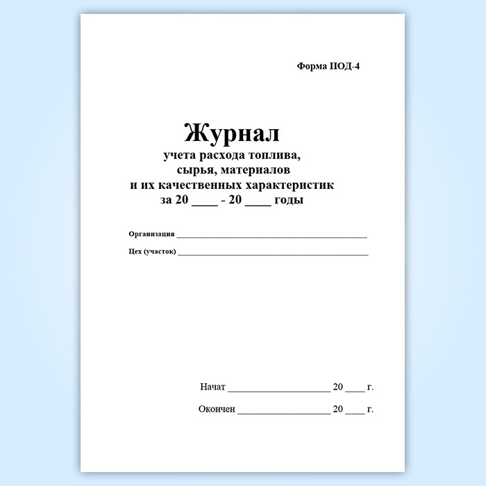 Журнал учета расхода топлива, сырья, материалов и их качественных характеристик (форма ПОД-4) в Ижевске купить