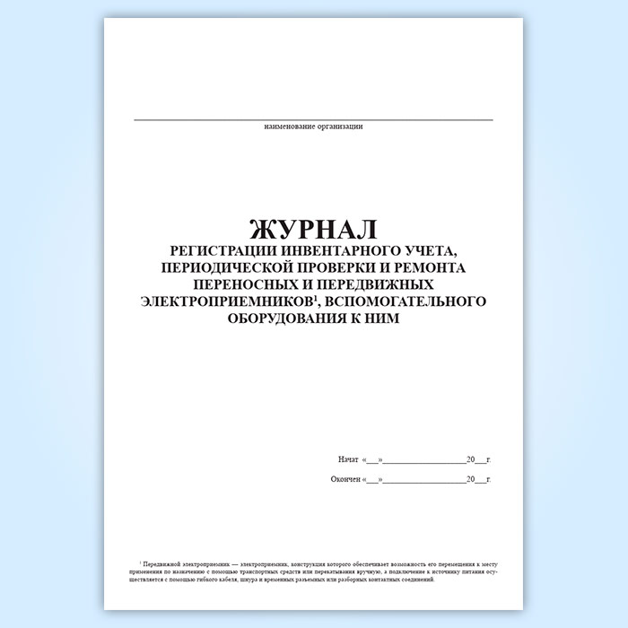 Журнал регистрации инвентарного учета, периодической проверки и ремонта переносных и передвижных электроприемников, вспомогательного оборудования к ним в Ижевске купить
