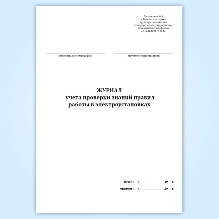 Журнал учета проверки знаний правил работы в электроустановках (Приложение 6) в Ижевске купить