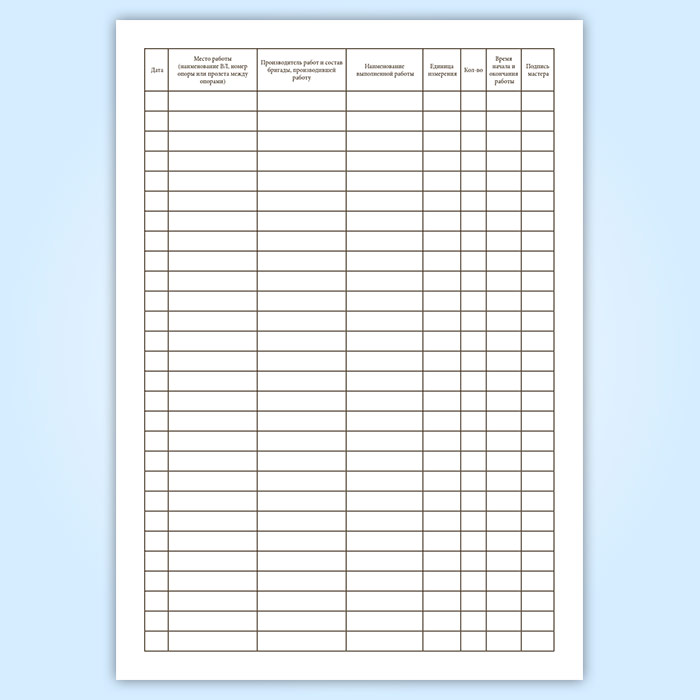 Журнал учета работ на ВЛ электропередачи напряжением 0,38-20 кВ в Ижевске купить