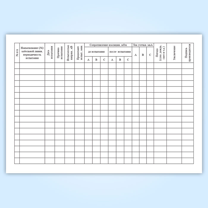Журнал испытаний кабельных линий с повышенным напряжением (форма № 20-Э) в Ижевске купить