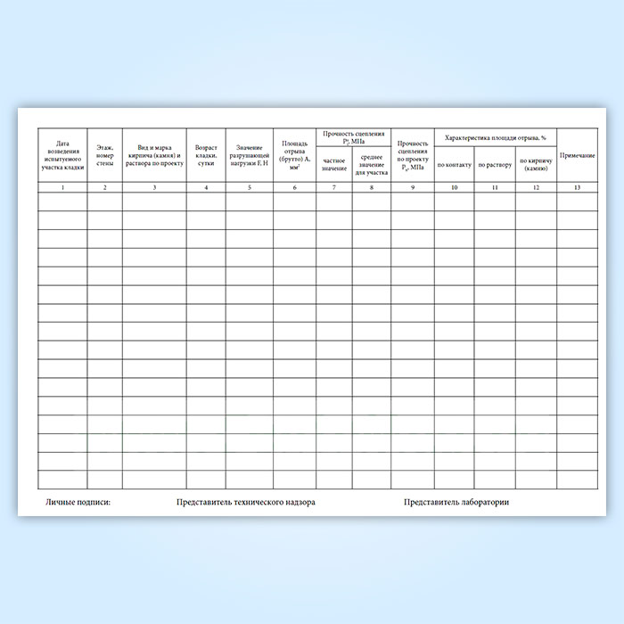 Журнал контрольных испытаний прочности сцепления в кладке на строительной площадке в Ижевске купить