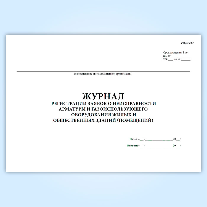 Журнал регистрации заявок о неисправности арматуры и газоиспользующего оборудования жилых и общественных зданий (помещений) (форма 24Э) в Ижевске купить