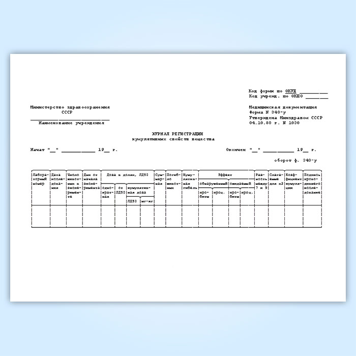Журнал регистрации кумулятивных свойств вещества (форма № 340-у) в Ижевске купить