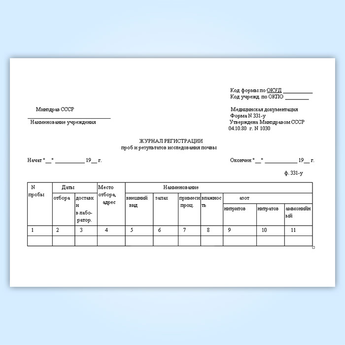 Журнал регистрации проб и результатов исследования почвы (форма № 331-у) в Ижевске купить
