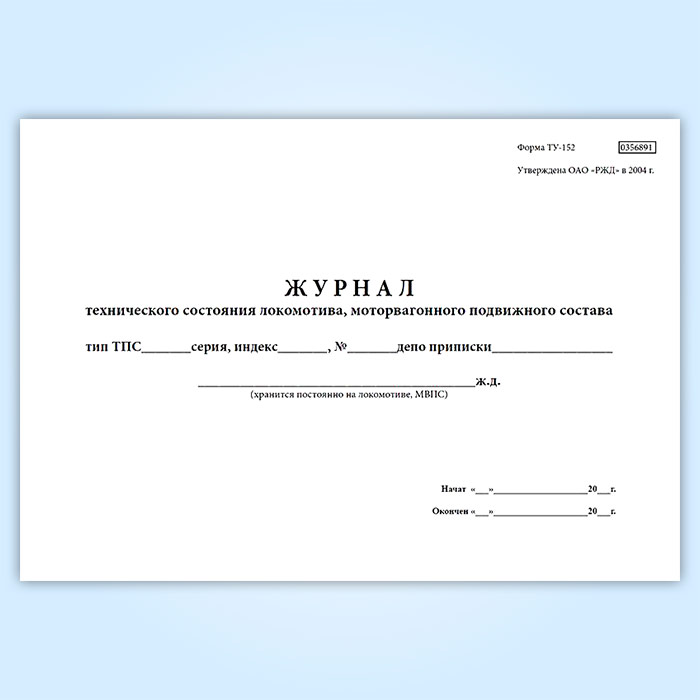 Журнал технического состояния локомотива, моторвагонного подвижного состава (форма № ТУ-152) в Ижевске купить