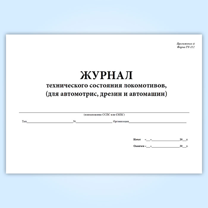 Журнал технического состояния локомотивов (для автомотрис, дрезин и автомашин) (форма ТУ-152) в Ижевске купить