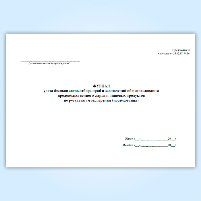 Журнал учета бланков отбора проб и заключений об использовании продовольственного сырья и пищевых продуктов в Ижевске купить