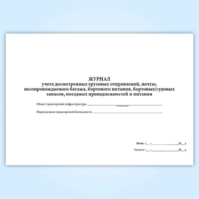 Журнал учета досмотренных грузовых отправлений, почты несопровождаемого багажа, бортового питания, бортовых/судовых запасов, поездных принадлежностей и питания в Ижевске купить