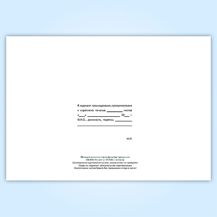 Вы получаете печатную продукцию прошнурованной и c местом для вашей печати в соответствии с действующими нормативными документами: