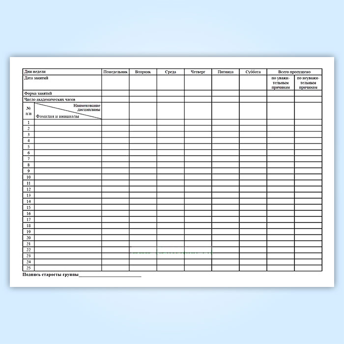 Журнал учета посещения занятий студентами в Ижевске купить