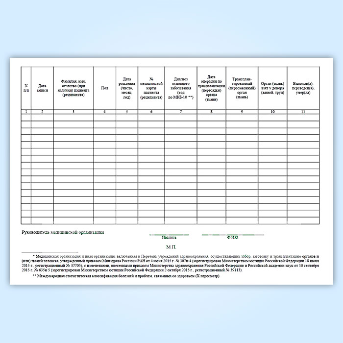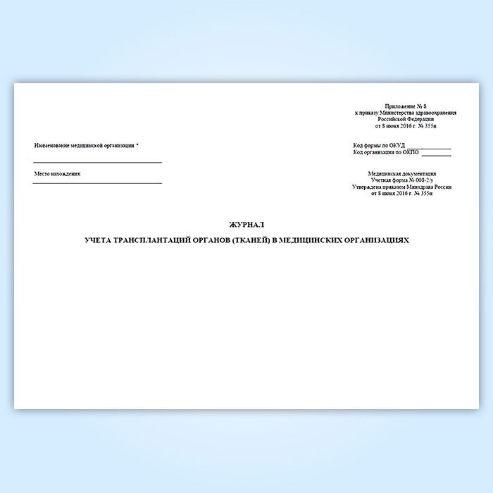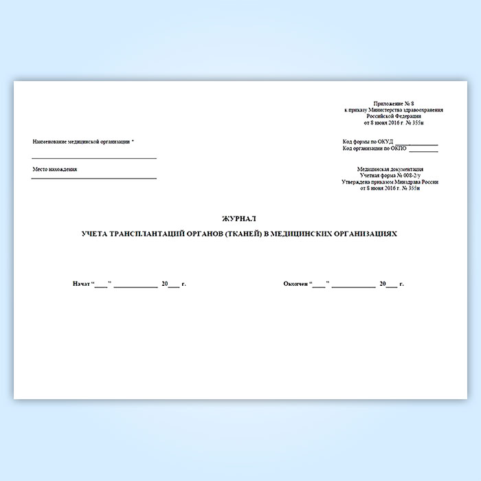 Журнал учета трансплантаций органов (тканей) в медицинских организациях (форма № 008-2/у) в Ижевске купить
