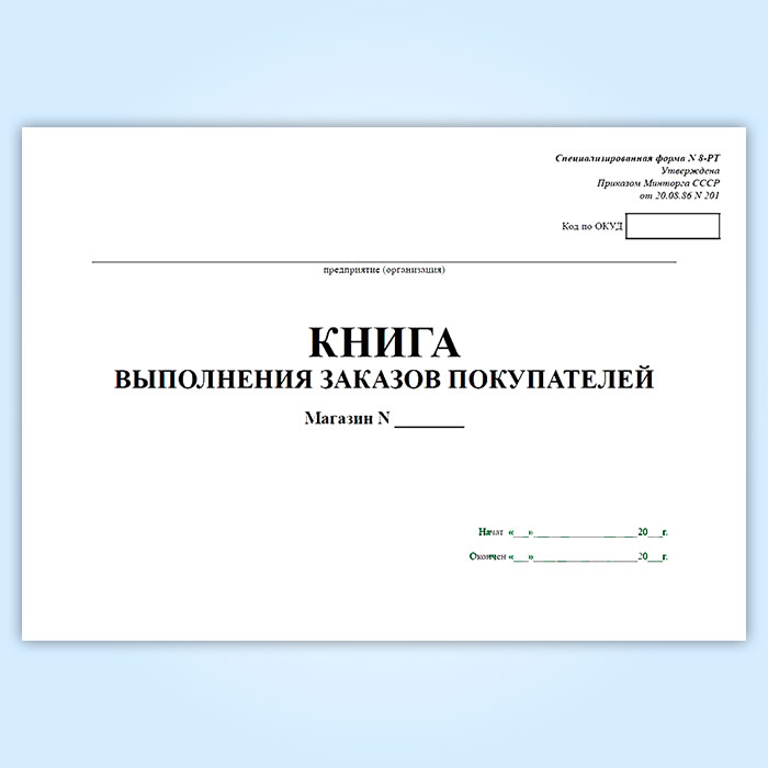 Книга выполнения заказов покупателей (специализированная форма № 8-РТ) в Ижевске купить