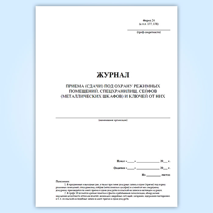 Журнал приема (сдачи) под охрану режимных помещений, спецхранилищ, сейфов (металлических шкафов) и ключей от них в Ижевске купить