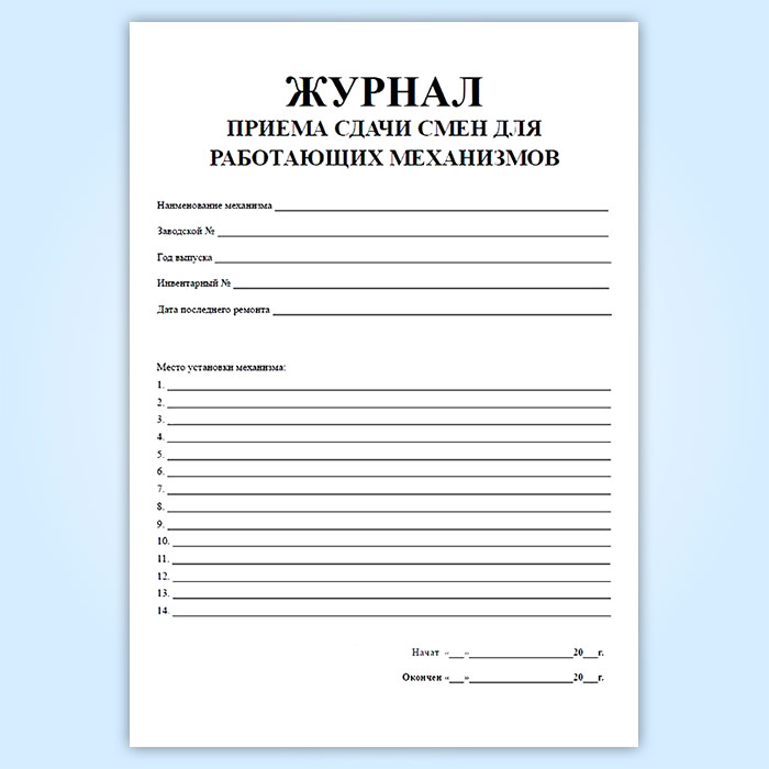 Журнал приема-сдачи смен для работающих на механизмах в Ижевске купить