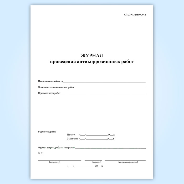 Журнал проведения антикоррозионных работ. СП 229.1325800.2014 в Ижевске купить