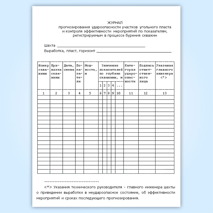Журнал прогнозирования удароопасности участков угольного пласта и контроля эффективности мероприятий по показателям, регистрируемым в процессе бурения скважин в Ижевске купить