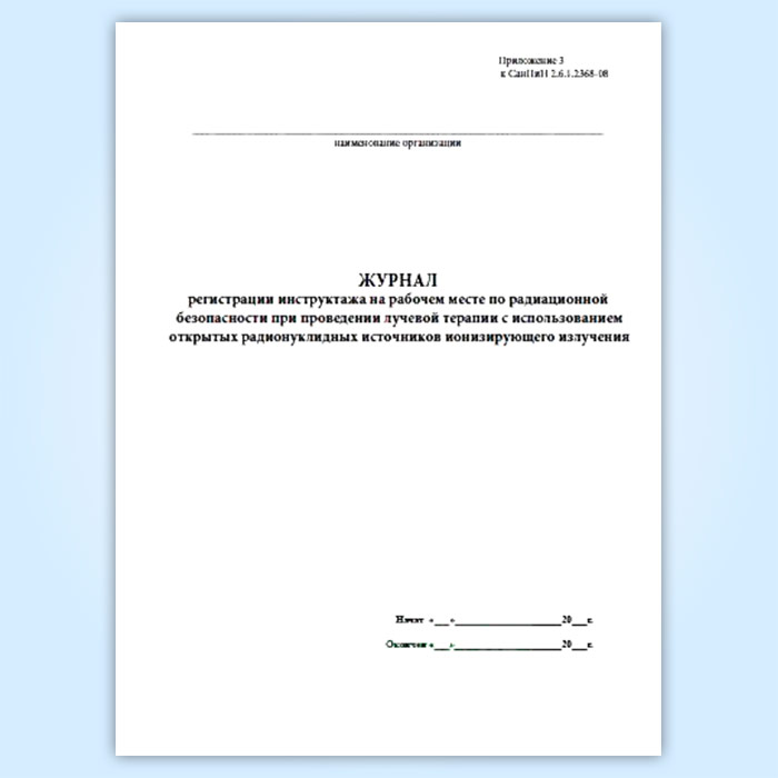 Журнал регистрации инструктажа на рабочем месте по радиационной безопасности при проведении лучевой терапии с использованием открытых радионуклиидных источников ионизирующего излучения в Ижевске купить