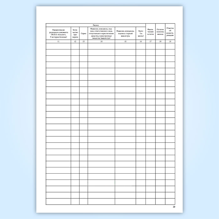 Журнал регистрации операций, связанных с оборотом наркотических средств и психотропных веществ дежурной (процедурной) медицинской сестры в стационарном отделении медицинской организации в Ижевске купить