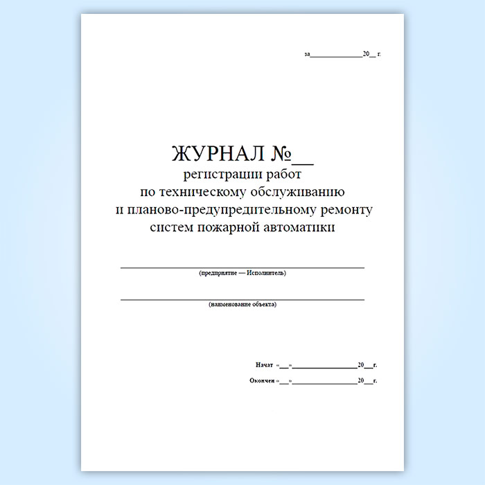 Журнал регистрации работ по техническому обслуживанию и планово-предупредительному ремонту систем пожарной автоматики в Ижевске купить