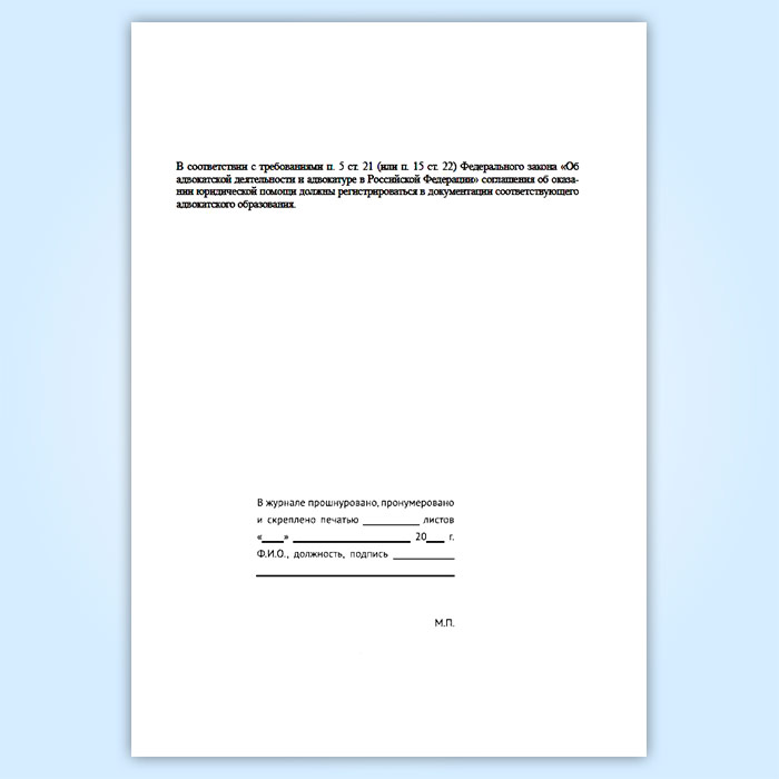 Журнал регистрации соглашений об оказании юридической помощи, заключаемых адвокатами с гражданами и юридическими лицами в Ижевске купить
