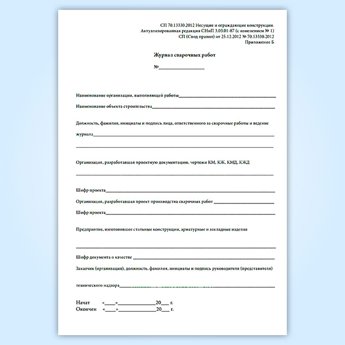 Журнал сварочных работ (приложение к СП 70.13330.2012) в Ижевске купить