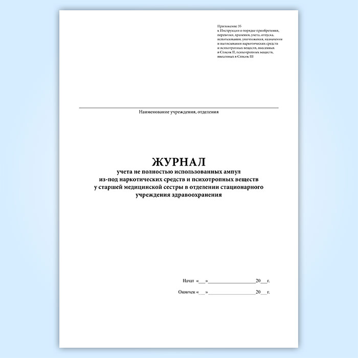 Журнал учета не полностью использованных ампул из-под наркотических средств и психотропных веществ у старшей медицинской сестры в отделении стационарного учреждения здравоохранения в Ижевске купить