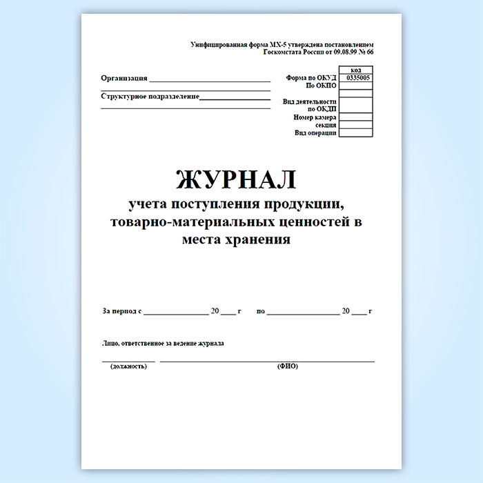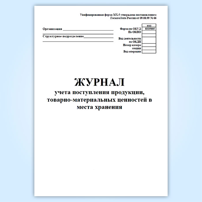 Журнал учета поступления продукции, товарно-материальных ценностей в места хранения (форма МХ-5) в Ижевске купить