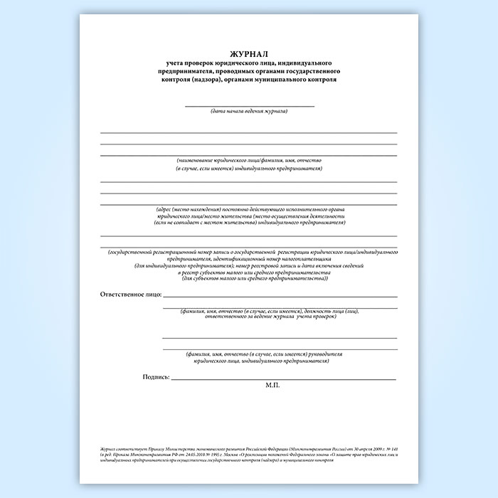 Журнал учета проверок юридического лица, индивидуального предпринимателя, проводимых органами государственного контроля (надзора), органами муниципального контроля (новый) в Ижевске купить