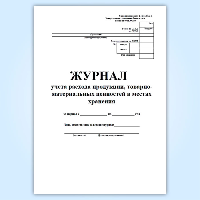 Журнал учета расхода продукции, товарно-материальных ценностей в местах хранения (форма МХ-6) в Ижевске купить