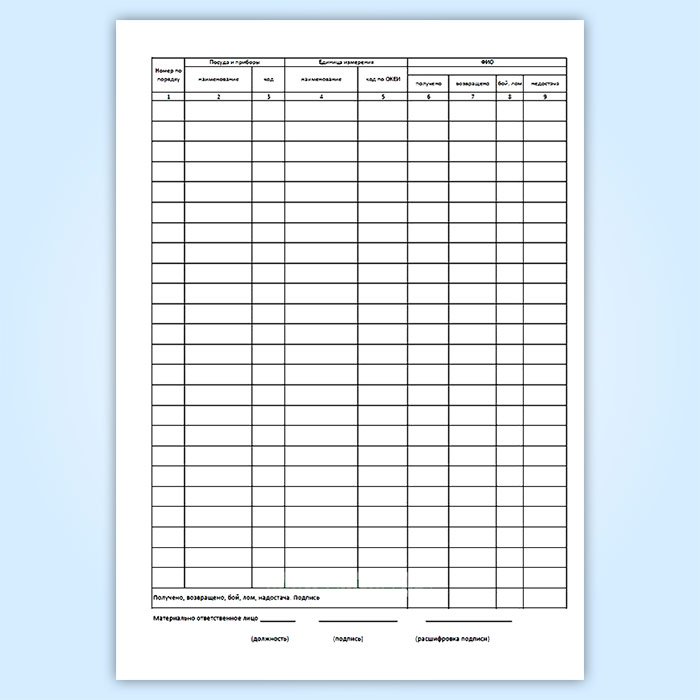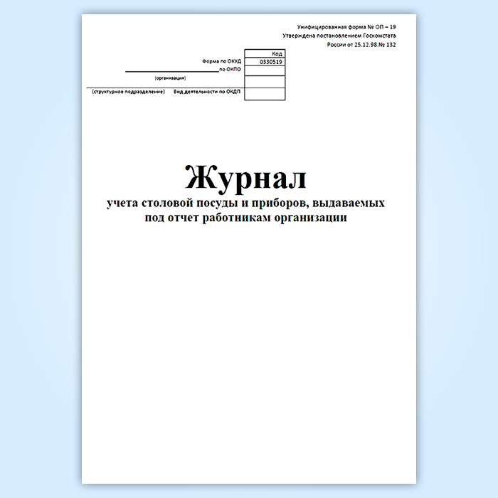 Журнал учета столовой посуды и приборов, выдаваемых под отчет работникам организации (форма № ОП-19) в Ижевске купить
