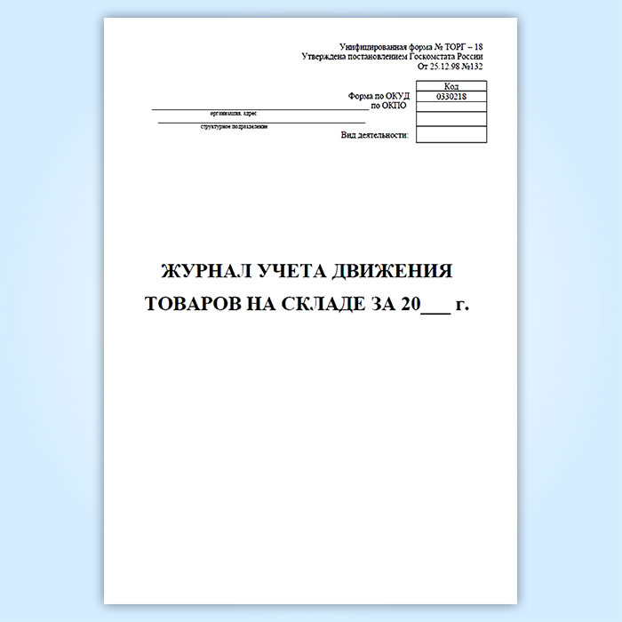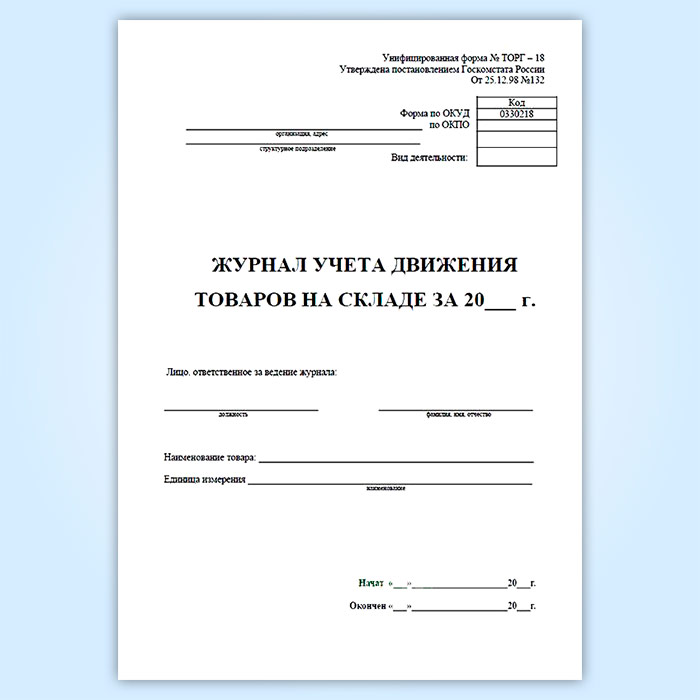 Журнал учета товаров на складе (форма ТОРГ-18) в Ижевске купить