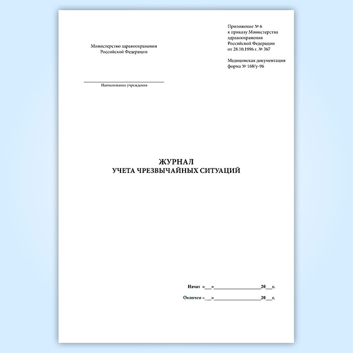 Журнал чрезвычайных ситуаций (форма № 168/у-96) в Ижевске купить