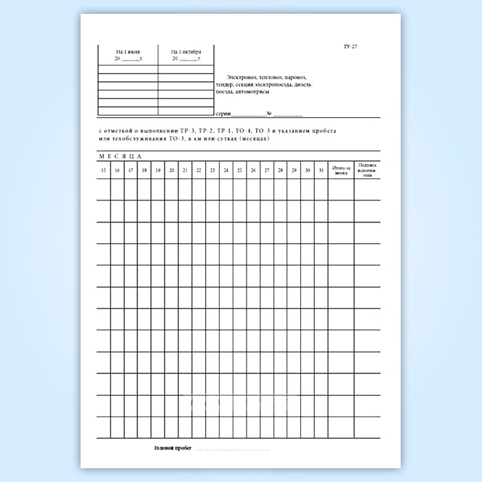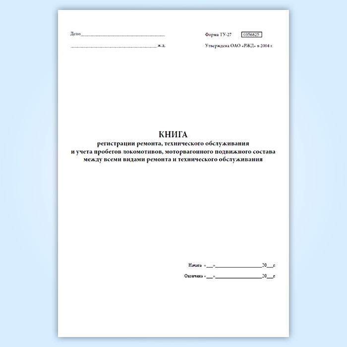 Книга регистрации ремонта, технического обслуживания и учета пробегов локомотивов, моторвагонного подвижного состава между всеми видами ремонта и технического обслуживания (форма ТУ-27) в Ижевске купить