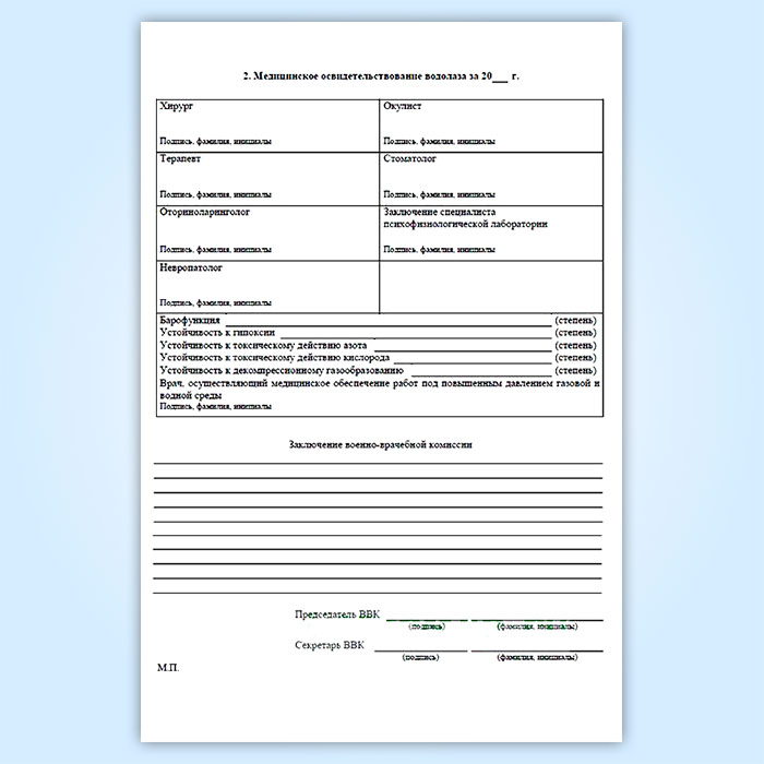 Медицинская книжка водолаза (МВД) в Ижевске купить