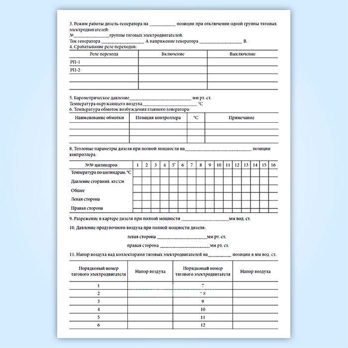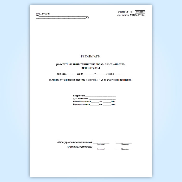 Результаты реостатных испытаний тепловоза, дизель-поезда, автомотрисы (форма ТУ-148) в Ижевске купить