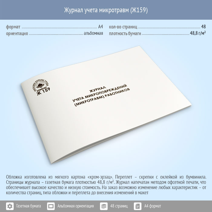 Журнал учета микроповреждений (микротравм) работников (48 стр., Ж159) в Ижевске купить