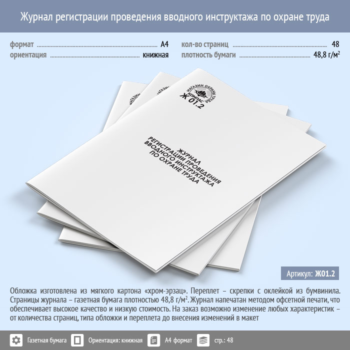 Журнал регистрации проведения вводного инструктажа по охране труда (48 стр., Ж01.2) в Ижевске купить