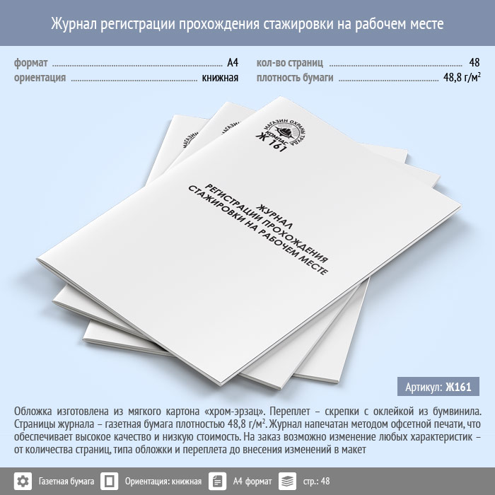 Журнал регистрации прохождения стажировки на рабочем месте (48 стр., Ж161) в Ижевске купить