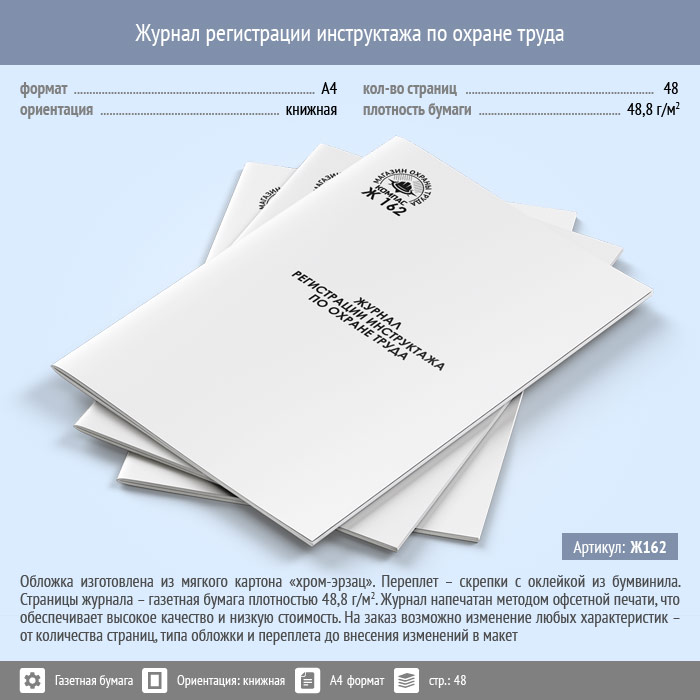 Журнал регистрации инструктажа по охране труда (48 стр., Ж162) в Ижевске купить