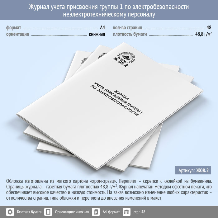 Журнал учета присвоения группы 1 по электробезопасности неэлектротехническому персоналу (48 стр., Ж08.2) в Ижевске купить